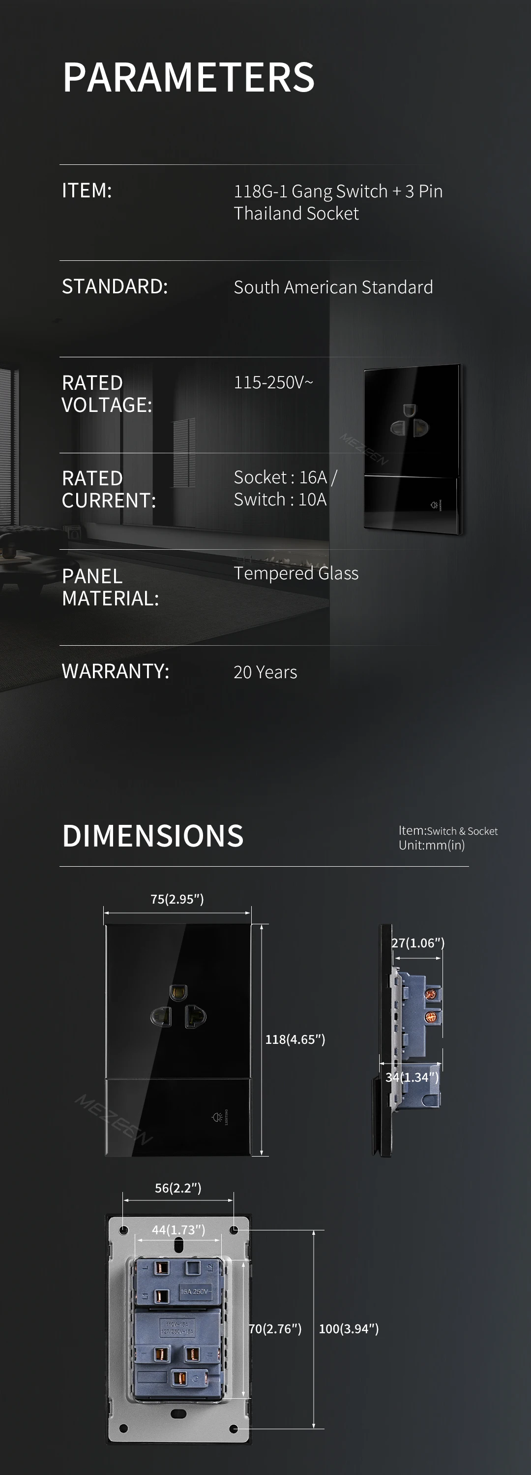 Model Number: 118G- 1 Gang Switch+ 3 Pin Thailand Socket