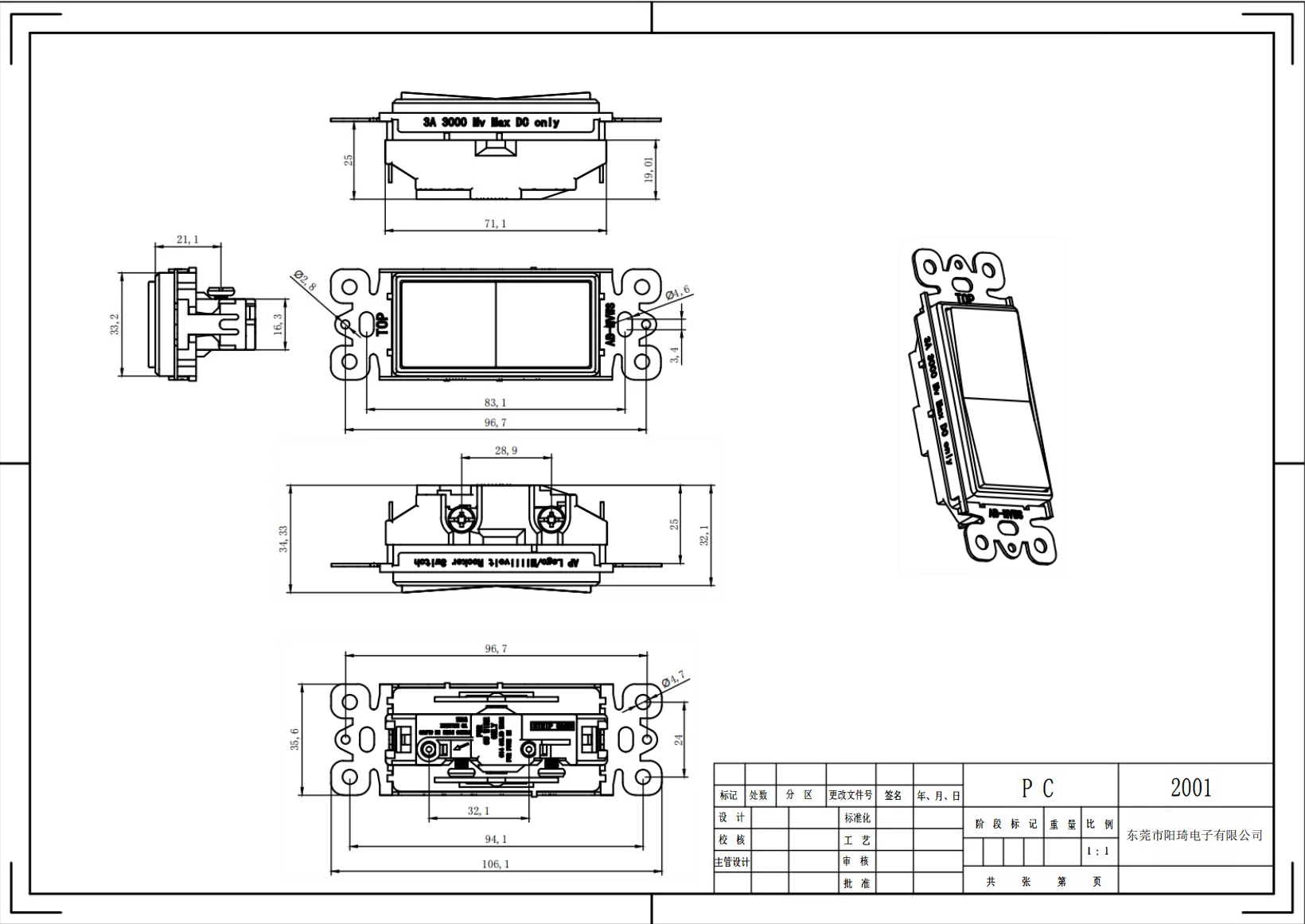 Size: Single Pole: 2 Gang 1 Way