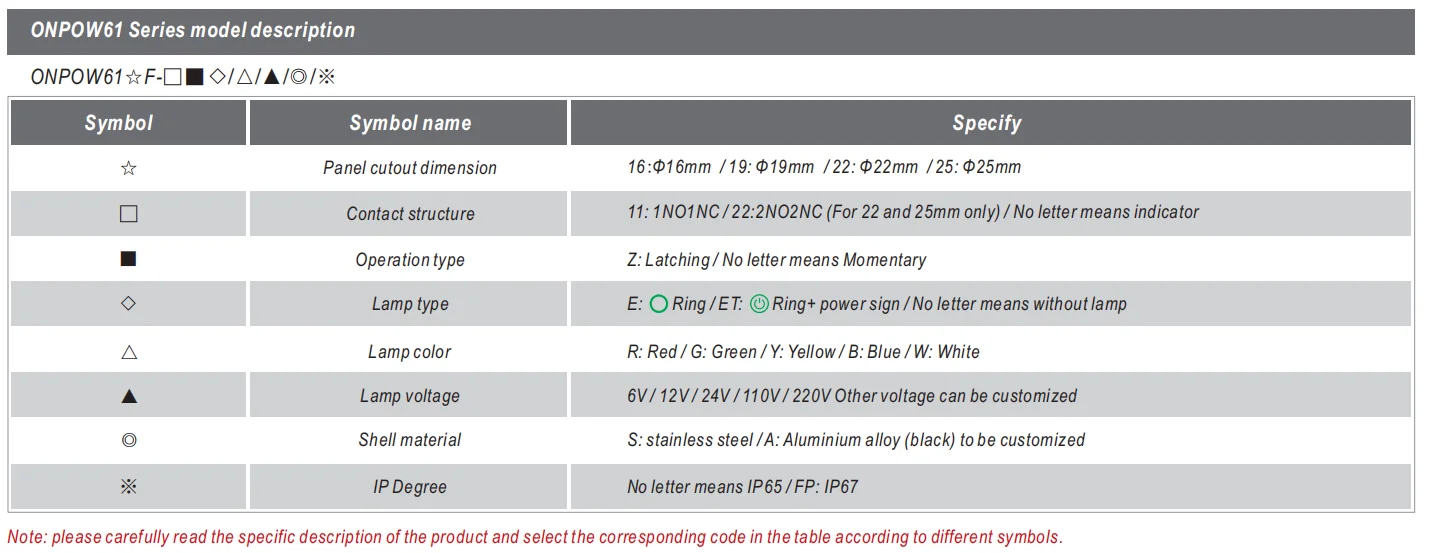 Model Number: ONPOW6122