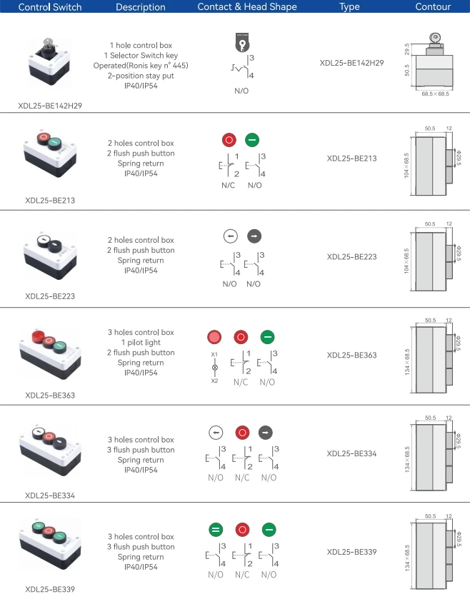 Switch Combination: 1NO1NC, 1NO, 2NO2NC, 2NO, 1NC